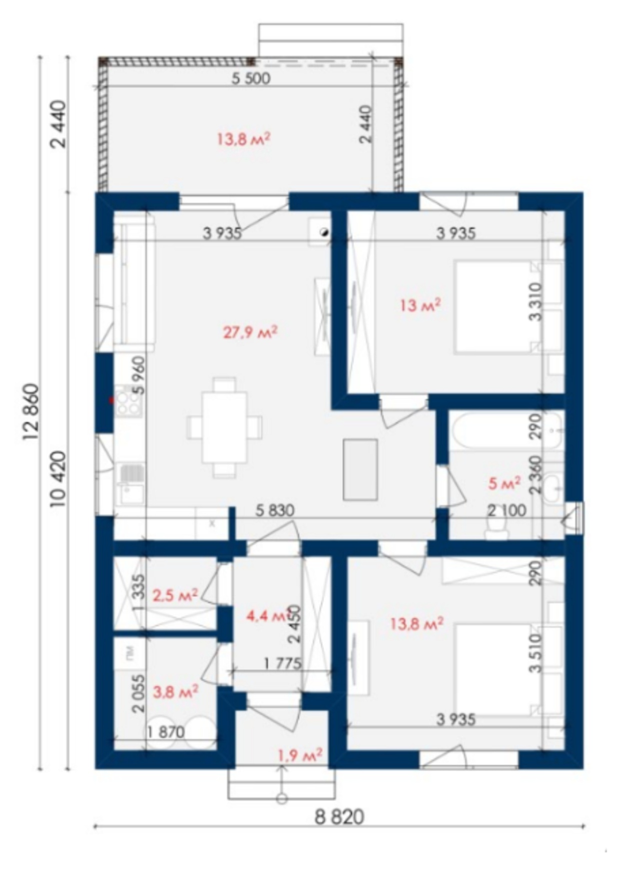 • Розміри — 10.4 х 8.8 м